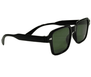 Black Square Sunglasses with Green Lens